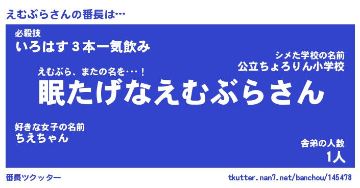 | 伝説のあだ名 | 『封印されしスナイパーえむぶら』 |