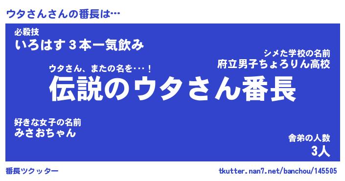 | ヒーロー風カッコイイあだ名 | 『スーパーウタサン』『魔戒騎士ウタ』 |
