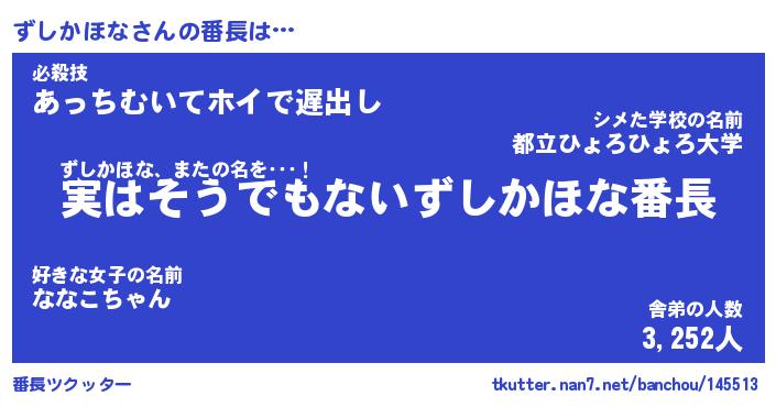 | 2回繰り返すあだ名 | 『ずしずし』『ずずしし』 |