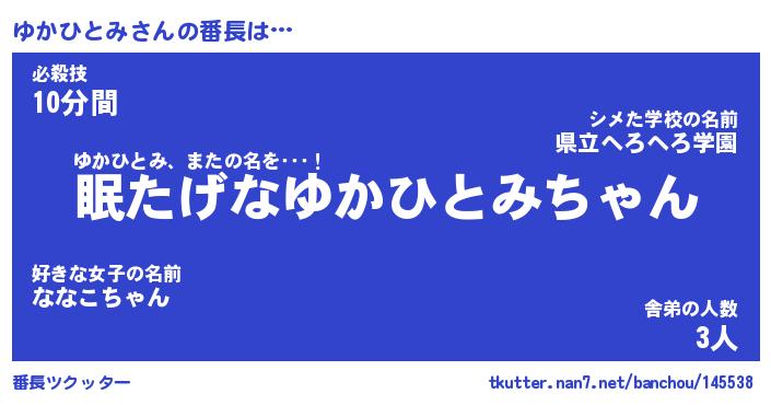| 伝説のあだ名 | 『封印されしスナイパーゆかひとみ』 |