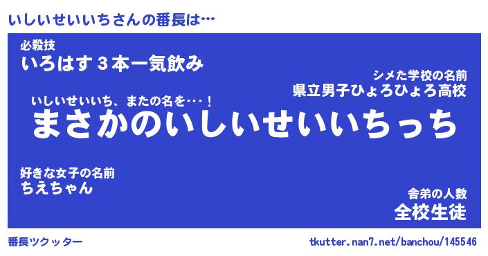 | 男性向けラノベタイトル風あだ名 | 『いしいせいいちの憂鬱』 |