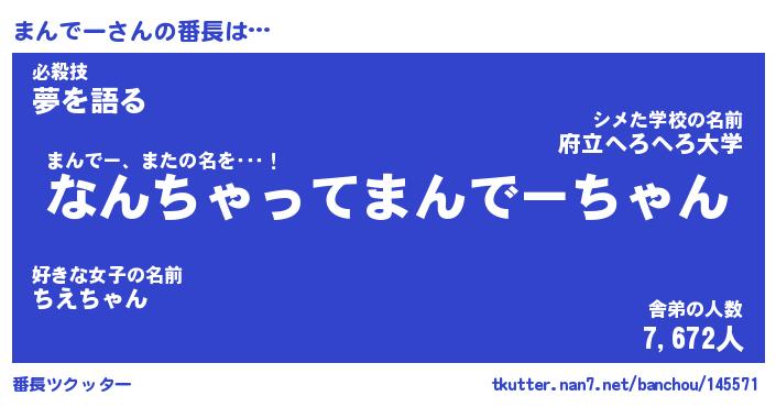 | 伝説のあだ名 | 『伝説のスナイパーまんでー』 |