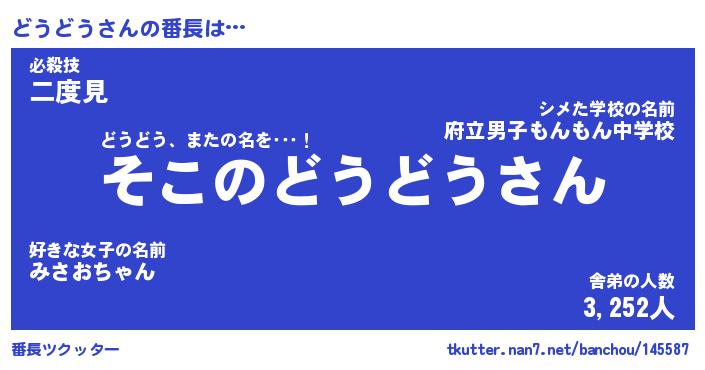 | 意味不明あだ名 | 『ペロリンどうどう』『永久保存どうどう』 |