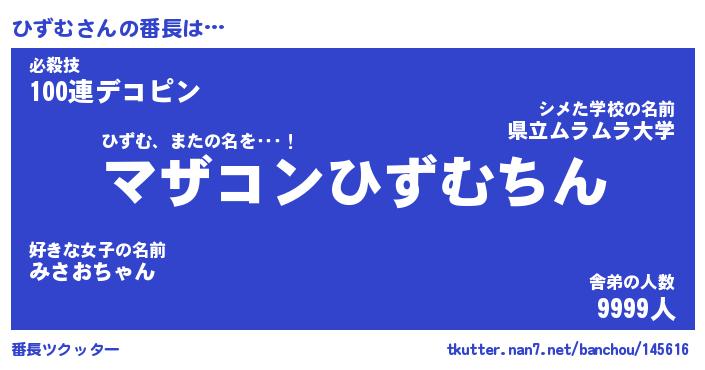 | ポケモン風あだ名 | 『ヒズチュウ』『ヒズムダネ』 |