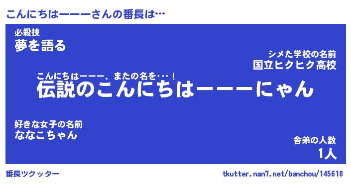 | 男性向けラノベタイトル風あだ名 | 『こんにちはーーーの憂鬱』 |