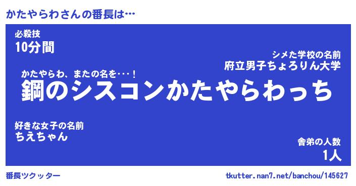 | ヒーロー風カッコイイあだ名 | 『スーパーカタヤラワ』『黄金騎士カタ』 |