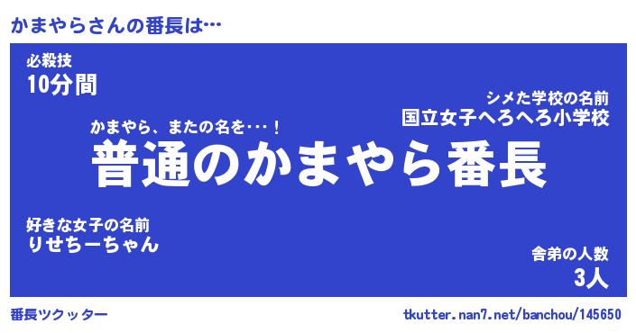 | 意味不明あだ名 | 『ペロリンかまやら』『永久保存かまやら』 |