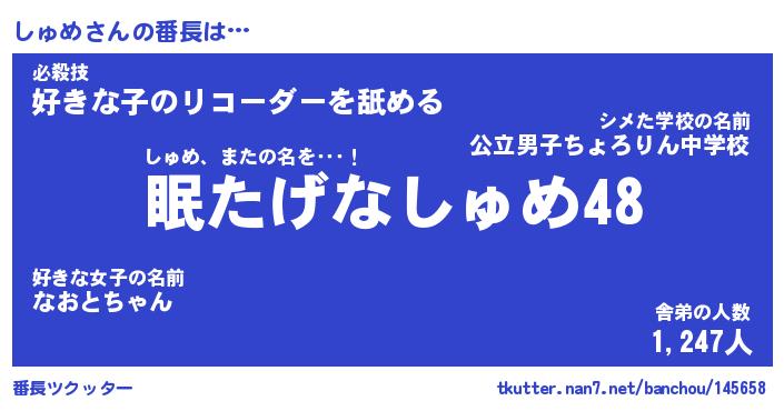 | 肩書あだ名 | 『しゅめCEO』『しゅめ国家主席』 |