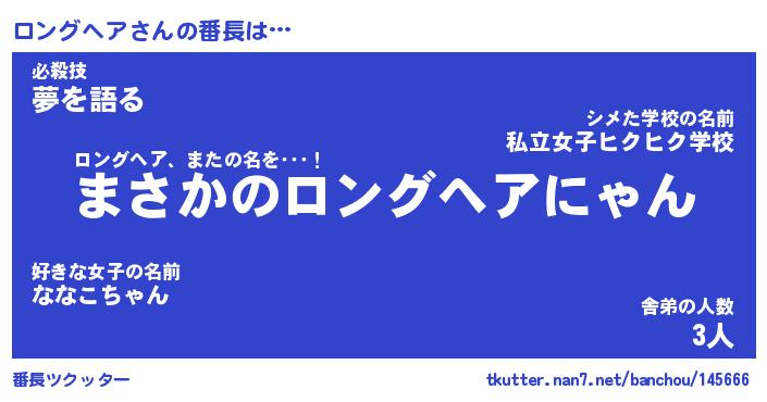 | ヒーロー風カッコイイあだ名 | 『スーパーロングヘア』『銀牙騎士ロン』 |
