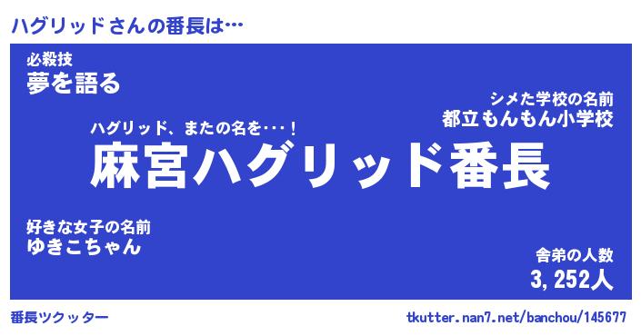 | 欧米人風あだ名 | 『マイケルハグリッド』 |