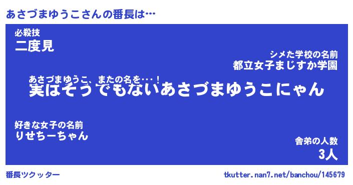 | 意味不明あだ名 | 『ペロリンあさづまゆうこ』 |