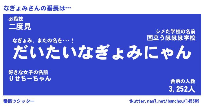 | 意味不明あだ名 | 『ペロリンなぎょみ』『永久保存なぎょみ』 |