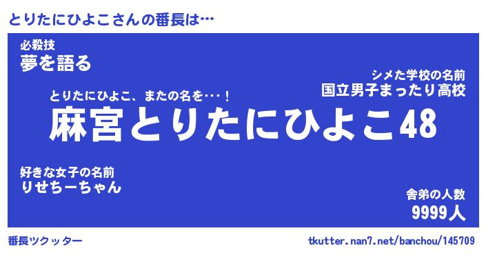 | ピコ太郎風あだ名 | 『トコ八郎』『ピト二郎』『トリ五郎』 |