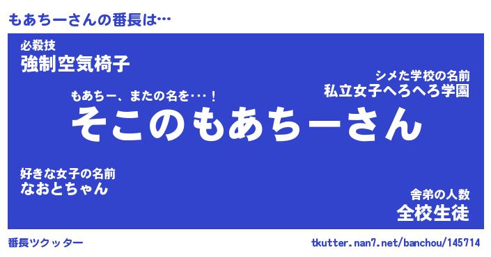 | 肩書あだ名 | 『もあちー御曹司』『もあちー総理大臣』 |