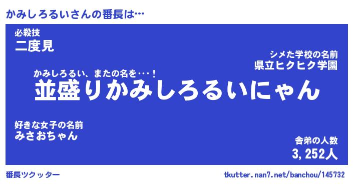 | 男性向けラノベタイトル風あだ名 | 『かみしろるいの憂鬱』 |
