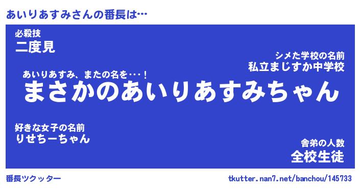 | 肩書あだ名 | 『あいりあすみCEO』『あいりあすみ副担任』 |