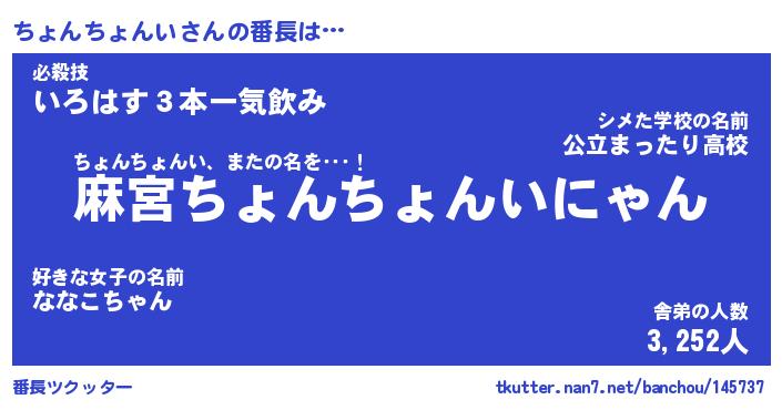 | 2回繰り返すあだ名 | 『ちょちょ』『ちちょょ』『ぬめぬめ』 |