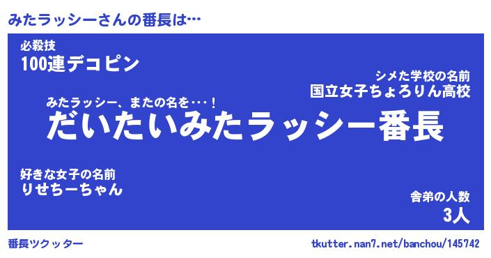 | 肩書あだ名 | 『みたラッシー店長』『みたラッシー教頭』 |