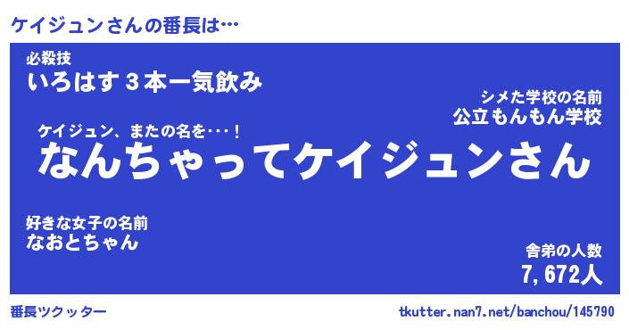 | ヘコむあだ名 | 『ケイもー』『なまこ酢』『ケイを』 |