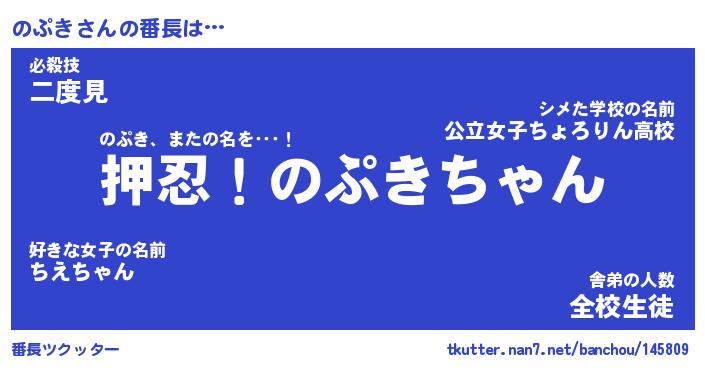 | ヒーロー風カッコイイあだ名 | 『スーパーノプキ』『ウルトラのぷきマン』 |