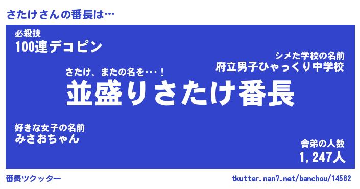 | 男性向けラノベタイトル風あだ名 | 『さたけの憂鬱』 |