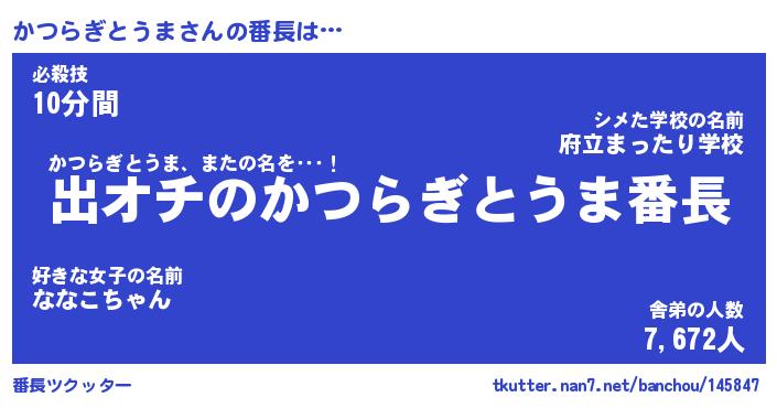 | 伝説のあだ名 | 『伝説のスナイパーかつらぎとうま』 |