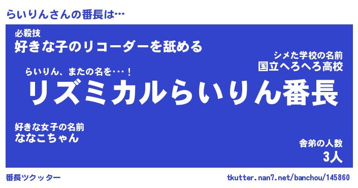 | 伝説のあだ名 | 『伝説のスナイパーらいりん』 |