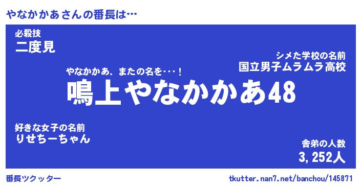 | 肩書あだ名 | 『やなかかあCEO』『やなかかあ国家主席』 |