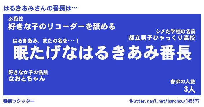 | ヒーロー風カッコイイあだ名 | 『スーパーハルキアミ』『魔戒騎士ハル』 |