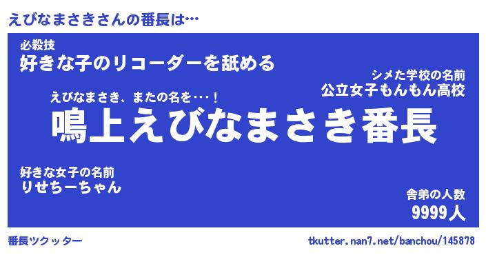 | ヘコむあだ名 | 『えびもー』『なまこ酢』『えびっ子』 |