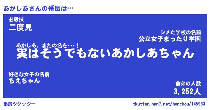 | 意味不明あだ名 | 『ペロリンあかしあ』『永久保存あかしあ』 |