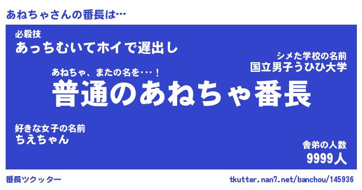 | 2回繰り返すあだ名 | 『あねあね』『ああねね』『ねとねと』 |
