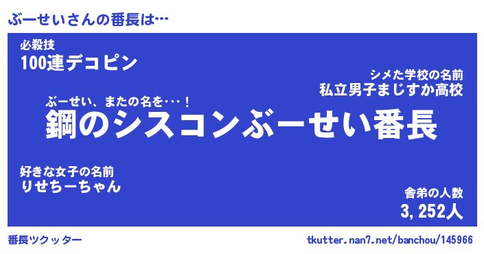 | 伝説のあだ名 | 『封印されしスナイパーぶーせい』 |