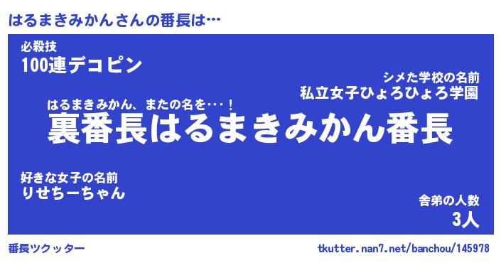 | 肩書あだ名 | 『はるまきみかん店長』 |