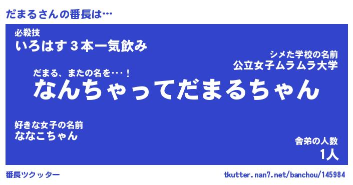 | 2回繰り返すあだ名 | 『だまだま』『だだまま』『ぬらぬら』 |