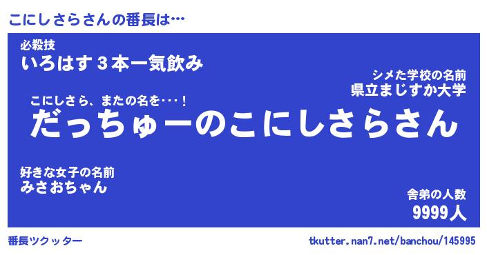 | ヘコむあだ名 | 『こにっふぃ~』『なまこ酢』 |