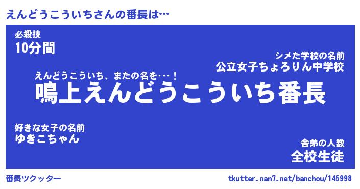 | 伝説のあだ名 | 『封印されし竜騎士えんどうこういち』 |