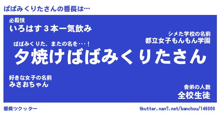 | ヒーロー風カッコイイあだ名 | 『スーパーババミクリタ』『銀牙騎士ババ』 |