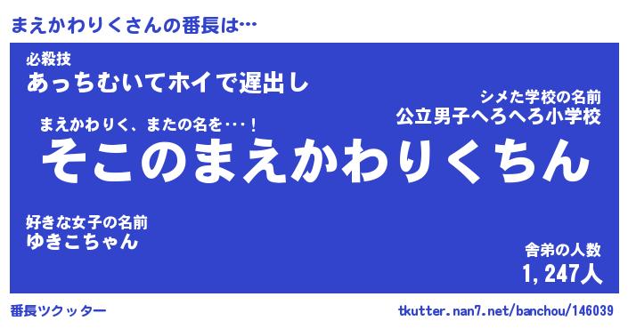 | 肩書あだ名 | 『まえかわりく社長』『まえかわりく班長』 |