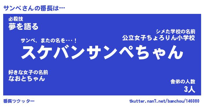 | 意味不明あだ名 | 『ペロリンサンペ』『サンペフォーエバー』 |
