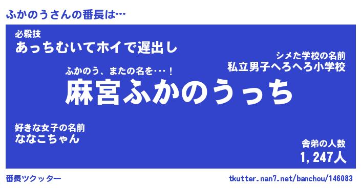 | ヒーロー風カッコイイあだ名 | 『スーパーフカノウ』『銀牙騎士フカ』 |