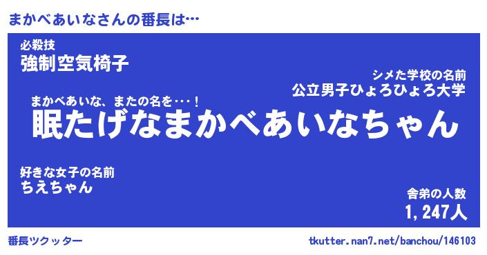 | 肩書あだ名 | 『まかべあいな社長』『まかべあいな班長』 |
