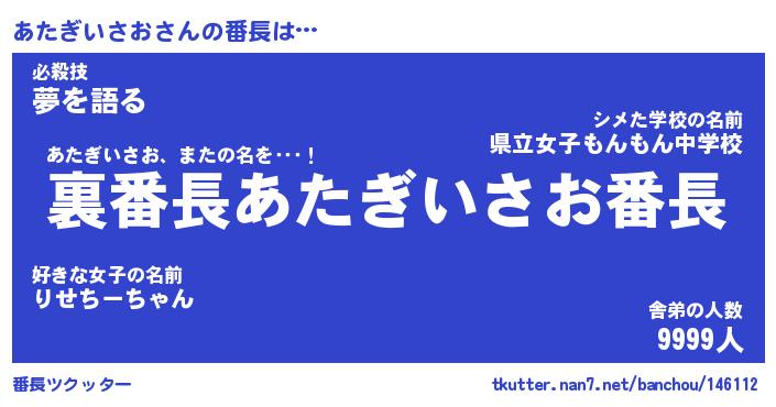 | 伝説のあだ名 | 『不死鳥のスナイパーあたぎいさお』 |