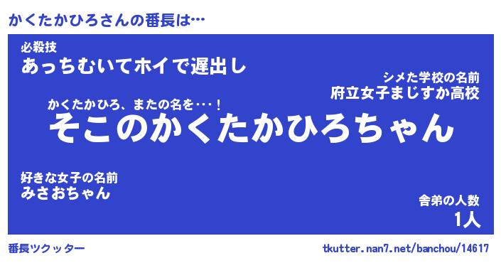 | 肩書あだ名 | 『かくたかひろ御曹司』 |