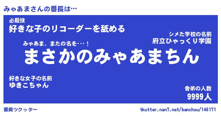 | ヒーロー風カッコイイあだ名 | 『スーパーミャアマ』『幻影騎士ミャ』 |