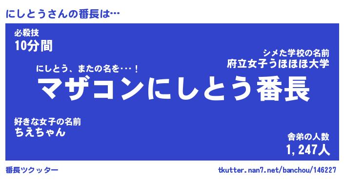 | ヒーロー風カッコイイあだ名 | 『スーパーニシトウ』『暗黒騎士ニシ』 |