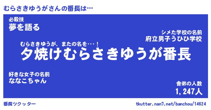 | 伝説のあだ名 | 『封印されしスナイパーむらさきゆうが』 |