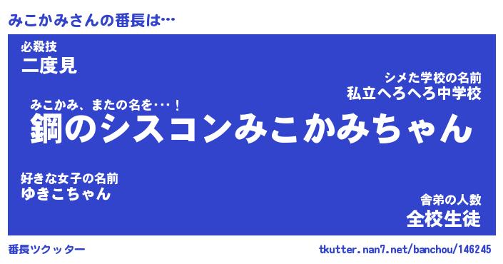 | 伝説のあだ名 | 『封印されし竜騎士みこかみ』 |