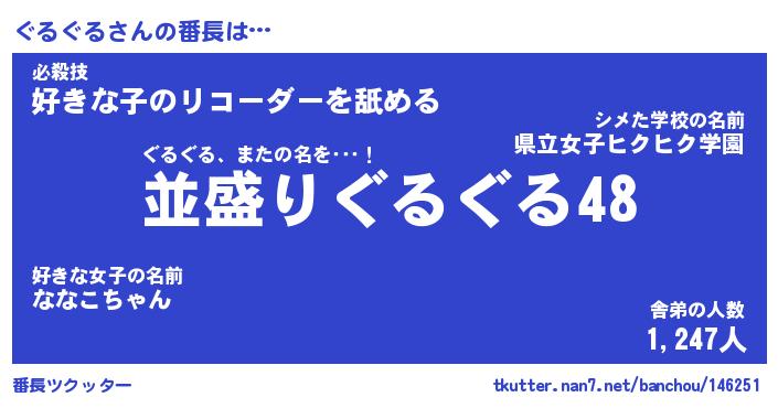 | ヘコむあだ名 | 『ぐるもー』『つくし』『ぐるっ子』 |