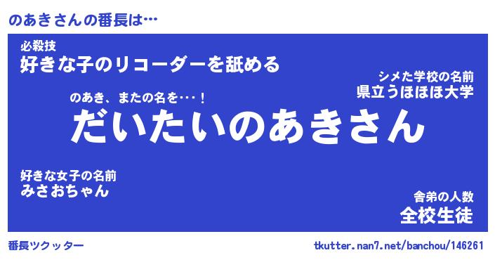 | 肩書あだ名 | 『のあき御曹司』『のあき大統領』 |